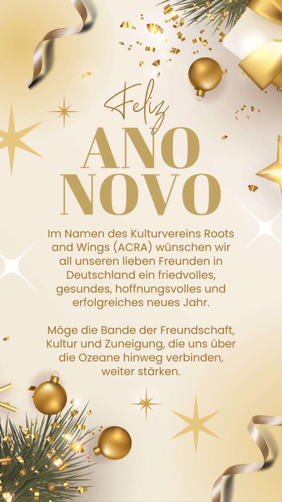 im Namen des Kulturvereins Roots ans Wings (ACRA) wünschen wir all unseren lieben Freunden in Deutschland ein friedvolles, gesundes, hoffnungsvolles und erfolgreiches neues Jahr.